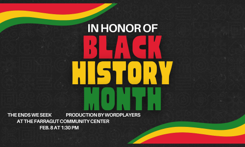The Farragut Museum celebrates Black History Month with a presentation, The Ends We Seek, from local Theatre group, the WordPlayers, on Sunday, Feb. 8 at 1:30 at the Farragut Community Center.